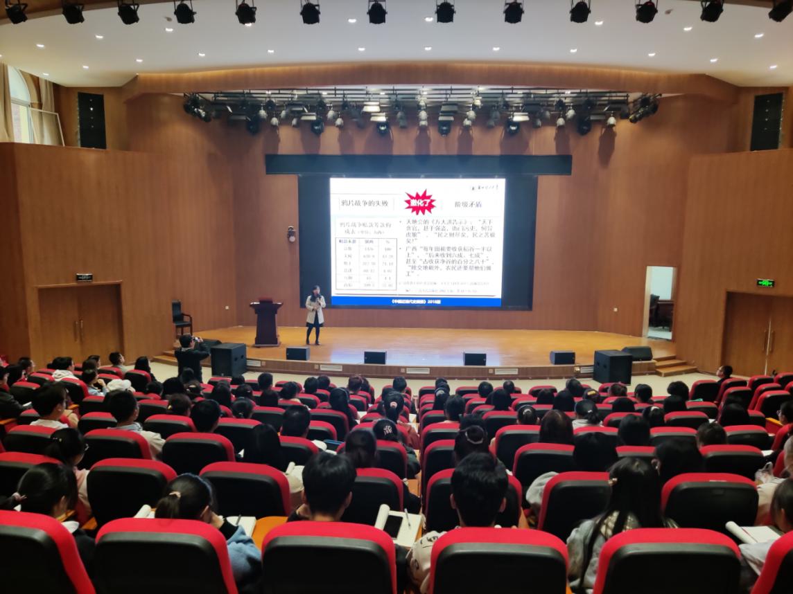 此次活动分两个阶段进行。第一阶段是示范教学。首先,解梅副教授就《中国近现代史纲要》课程第二章第一节内容“农民群众斗争风暴的起落”进行了教学示范。解梅副教授从太平天国农民战争与农民斗争的局限和意义两大方面着手,详细讲述了太平天国起义的背景、洪秀全与拜上帝教、太平天国农民战争的发展进程、《天朝田亩制度》和《资政新篇》的主要内容、太平天国农民起义的历史意义、起义失败的原因和经验教训。解梅副教授课堂讲授思路清晰、环节紧凑、层层递进、娓娓道来,吸引了广大师生的注意力。