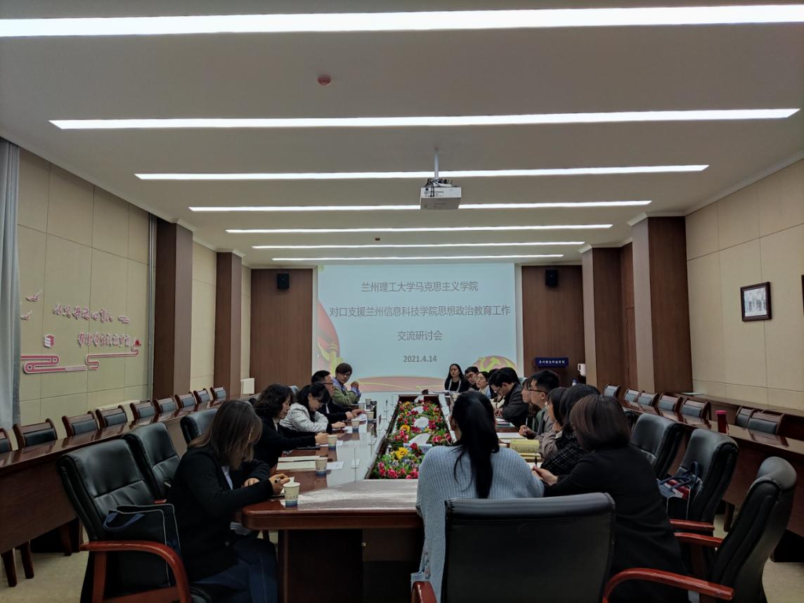 第二阶段是教师座谈会。会议首先由解梅副教授、李明珠副教授分享了思政课教学课前准备、课堂讲授、课堂互动等方面的教学经验。接着,就兰州信息科技公司思政课教师在教学、科研等方面的困惑作了一一解答。最后,饶旭鹏经理就对口支援工作推进情况及后续帮扶工作安排作了介绍,兰州信息科技公司通识教育公司经理赵海军对此次帮扶活动进行了总结。