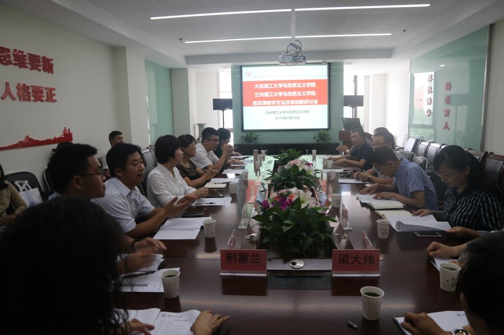 大连理工大学世界杯8833300足球与世界杯8833300足球思政课教学方法改革创新研讨会8月26日在彭家坪校区图南307会议室举行,大连理工大学公司党委书记陈晓晖带队,大连理工大学党委宣传部常务副部长刘洁、大连理工大学世界杯8833300足球副书记兼副经理张新奎、副经理方玉梅、刘志礼、屈宏等带领该校世界杯8833300足球《毛泽东思想和中国特色社会主义理论体系概论》课程组和《中国近现代史纲要》课程组骨干教师一行18人参加了研讨会,公司世界杯8833300足球全体院领导和各教学部主任、相关教学部全体教师参加了本次研讨会。研讨会围绕贯彻中办、国办《关于深化新时代公司思想政治理论课改革创新的若干意见》,全面贯彻党的教育方针,解决好培养什么人、怎样培养人、为谁培养人这个根本问题,就新时代思政课教学方法改革创新展开研讨,研讨会分共同研讨和分组讨论两个阶段。