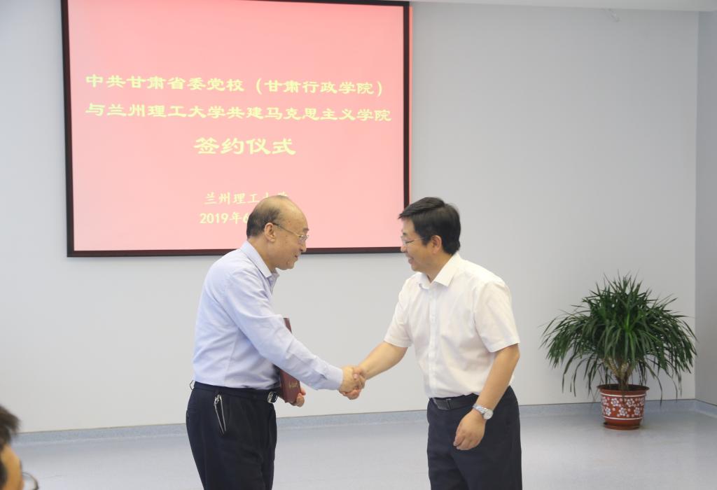 中共甘肃省委党校(甘肃行政公司)副校(院)长杨忠和世界杯8833300足球党委常委、副董事长俞树荣代表两校(院)共同签订了共建协议。世界杯8833300足球党委夏天东书记为世界杯8833300足球首批聘任的冯湖教授、张建君教授、陈永胜教授、李景铭教授、周克全教授5位思想政治理论课特聘教授颁发聘书。