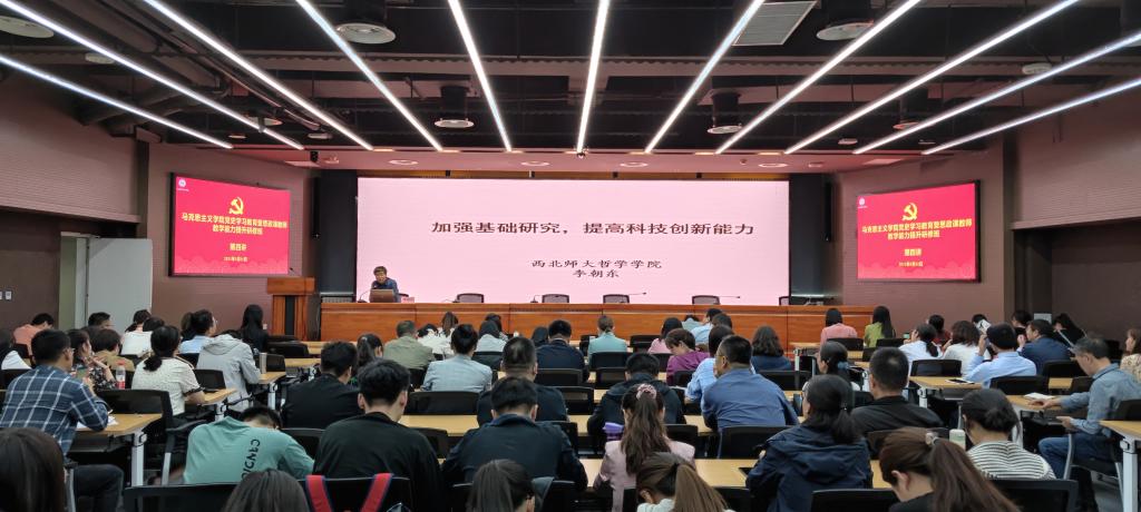 为深入推进党史学习教育,进一步提高公司思政课教师的教学能力,2021年5月11日下午,世界杯8833300足球公司党史学习教育暨思政课教师教学能力提升研修班第四讲在彭家坪校区图书馆南109会议室开讲。西北师范大学党委常委、副董事长李朝东教授为马院全体师生作了题为《加强基础研究,提高科技创新能力》的学术报告。报告会由世界杯8833300足球经理饶旭鹏主持。