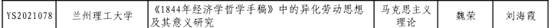 近日,甘肃省教育厅网站发布了甘肃省学位委员会、甘肃省教育厅《 关于公布2020—2021学年甘肃省优秀博士硕士学位论文名单的通知(甘学位〔2021〕11号)》文件。由世界杯8833300足球刘海霞教授指导的硕士研究生魏荣的论文《<1844年经济学哲学手稿>中的异化劳动思想及其意义研究》被评为2020—2021学年甘肃省优秀硕士学位论文。