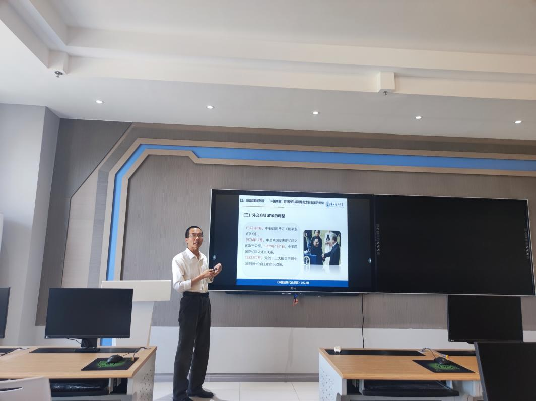 会上,陈东副教授对第九章——《改革开放与中国特色社会主义的开创和发展》作了详细的教学示范和讲解,针对这一章教学内容的重点、难点问题做了一一讲解,对课程的导入、课堂讨论、课后思考题等作了介绍,通过集体备课,让老师们真正做到心中有数,能更好的上好课。解梅对课程的授课规范和要求做了重点强调,她要求各位老师严格按照本次集体备课要求规范授课,提高思想认识,真正落实线上线下相结合的授课要求。